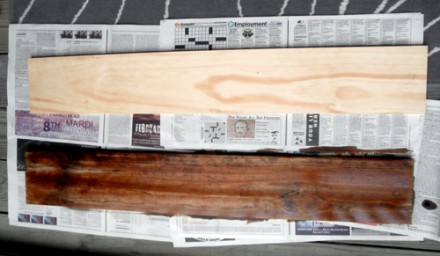 From Kristen: My fiancee and I recently moved into our new apartment. We wanted something over our bed but did not want a headboard. We are both obsessed with Instagram (who isn't?) and I printed a bunch of our photos from it but wasn't sure what to do with them, there were too many to frame! I designed this great way to display them using two pieces of found lumber and bull dog clips. This works perfect because it is functional art and the photos can be changed and updated with our current favorites.
