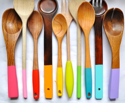 What are your weekend plans? The weather looks very promising in Greenville, so I know I'll be outside for sure...hopefully joining friends for a couple exciting Greenville events. Both Artisphere and the Greenville Urban Farm Tour are this weekend, and I want to take full advantage of both. Outside that, it sure would be nice to get some kitchen updates underway. Today's round up features 4 incredibly easy ways to add a little interest to the room we spend a ton of time in.Love this rainbow of spoons painted and covered with food save shellac, as demonstrated on Little Bit Funky.