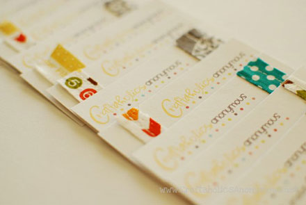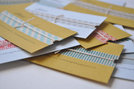These printed cards are embellished with washi tape, twine, and a hole punch. By Mint