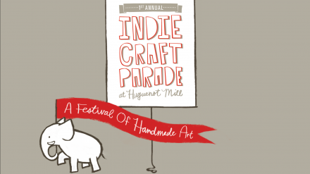 With all of the indie craft fairs across the country, we worked tirelessly to make sure our name and branding stood apart. We labored over the name, and once we settled on Indie Craft Parade, it didn't take long to decide that we needed a mascot that could match our excitement about the event. An elephant was perfect: marching, leading our parade, like a fabulous circus. We named him Hugo, after the location of our event, the Huguenot Mill.