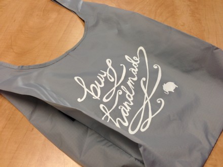 What's up for grabs: 2 of our Buy Handmade tote bags. These totes were screenprinted right here in town by Dapper Ink on fabulous Baggu bags. These totes are super sturdy and durable, and fold up into a tidy little pouch for carrying wherever you go.