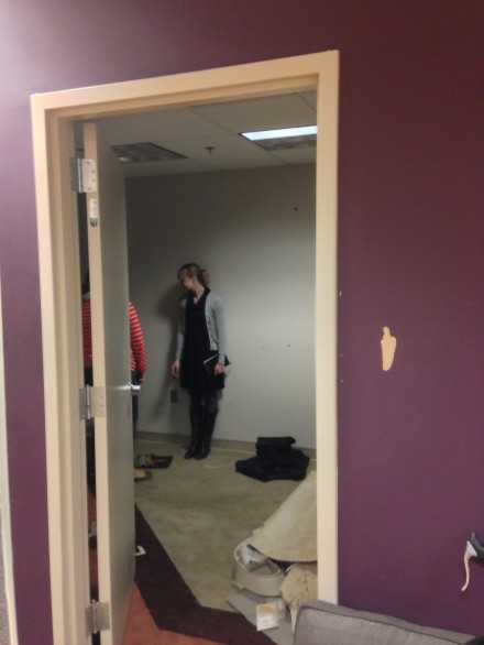 Though we love our job, we sometimes feel as though Indie Craft Parade makes migrants out of us. Our collection of events throughout the year is organized from our living rooms, local coffee shops, or a corner in our respective workplaces. However, when we learned that there was space available at The Forge in Downtown Greenville (the newest endeavor of the Iron Yard), we jumped at the opportunity. The Forge is currently under construction/renovation, so they've offered to let us tackle our new office space from the ground up.This afternoon our team went to our future location to take measurements and draw a rough plan. Our little 135 square feet has a long way to go, but we think it's going to be an awesome space to work and dream when it's finished.