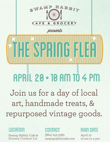 Looking for something fun to do this Saturday? Walk, ride, or drive over to our friends at Swamp Rabbit Cafe & Grocery for The Spring Flea!