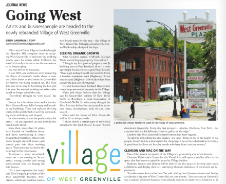 Currently the cover story for the Greenville Journal is the new development in the Village of West Greenville, the hub of Greenville's art community. If you haven't heard, West Greenville has recently undergone some exciting rebranding and new development. Every time we look we learn of new studios, shops, and even restaurants opening or relocating to West Greenville. And we're so excited to see this group getting more exposure from the surrounding community.