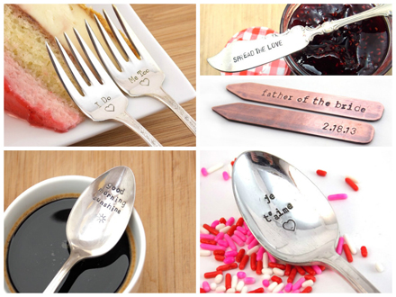 Block & Hammer rescues vintage silverware, and hand-stamps it with fun phrases and custom messages. They also offer copper and aluminum collar stays, the perfect gift for groomsmen or any dapper gent.