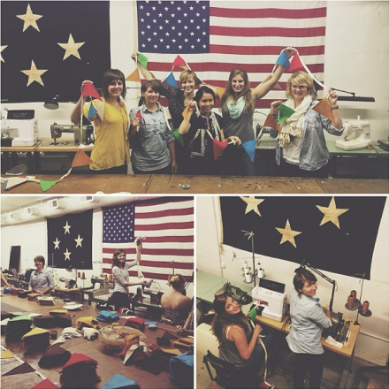Community WorknightAn expanded festival means more garland. We were really happy to give our artists and attendees more room this year, but that required a lot more decorations. Thanks to the help of an amazing team of volunteers, we cranked out hundreds of linear feet of our 6 color garland, one of Indie Craft Parade's trademarks.