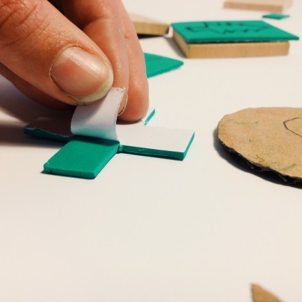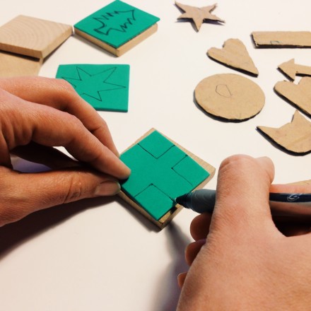 1) Cut a piece of foam roughly the size of the woodblock.2) Draw the shape of your stamp on the foam. Don't forget, your stamped image will be backwards, so draw your shape the opposite of how you want it to stamp.