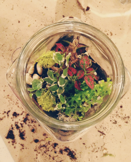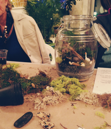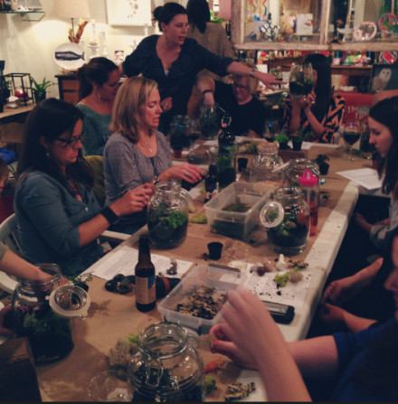 Amy Walcher of Urban Digs teaching how to build and maintain a successful terrarium. We had no idea what all went into it--such great information!