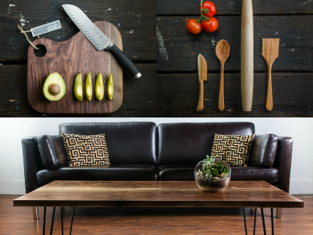 SLAB creates beautifully function home goods. From the local Greenville mills, they source top quality walnut, cherry, and maple wood and produce serving boards, utensils, and perfectly streamlined furniture.