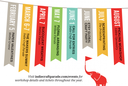 Anyone who has followed Indie Craft Parade for even a short amount of time knows that we have two main objectives: 1) cultivate an awareness and appreciation of handmade art and 2) support artists and creatives in growing their businesses.Well, we're super excited to announce that over the next year we have even bigger and better plans to make that happen. Of course, we'll continue to hold The Makers Summit (it's going to be bigger and better than ever!) and the Holiday Fair(Saturday, December 6). Also, we will again be hosting monthly workshops or meet-ups to further encourage hand-making or small creative business success. We've planned a a huge assortment of events where attendees can learn a new skill they've always wanted to try, connect with other makers in our community, and develop valuable tools for growing their trades.