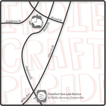 For those of you coming to Indie Craft Parade from out of town and needing a place to stay, we want to tell you about our preferred hotel. Comfort Inn of Downtown Greenville has donated generously to our event this year and are welcoming vendors and attendees alike to stay with them. Besides their close proximity to our event--just a few minutes by car--their accommodations are comfortable, their staff is friendly, and their rates are affordable. Take the stress out of finding lodging and give them a call!For more information or to book a room with Comfort Inn Downtown, call (864) 283-0370.