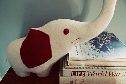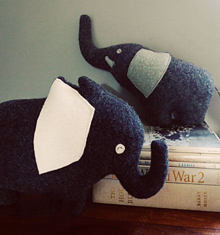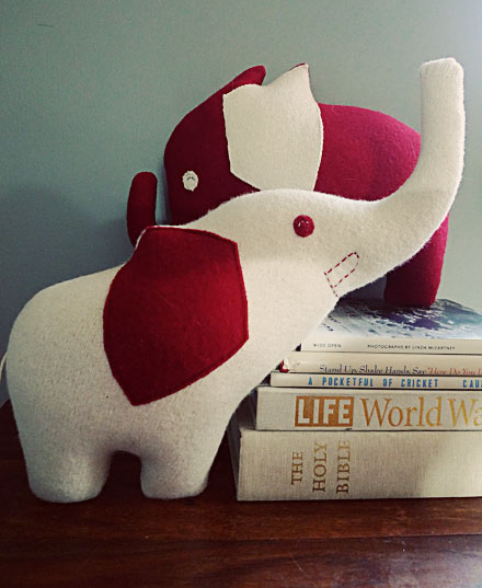 You've probably seen our adorable mascot around, a happy little elephant named Hugo. We recently asked one of our fabulous vendors from last year, Three Bad Seeds, to bring him to life... er, plush.Amanda Weiss, felt hoarder and doodler extraordinaire, came up with four amazing versions of Hugo... and I can't keep from smiling when I see them!