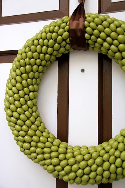 Have acorns scattered across your yard? Turn them into a wreath for your front door. I love the brilliant green color Katie Miller chose to paint the acorns.
